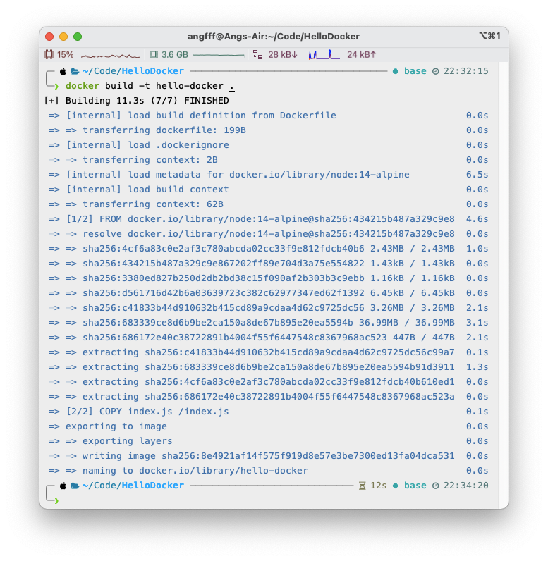 这里使用到了 NodeJS ,因此需要添加其对应的基础镜像,本来应该从 Linux 的基础镜像(操作系统)开始,例如 alpine ,但 NodeJS 的镜像实际上已经是基于 Alpine 镜像构建的了,所以我们可以直接使用 NodeJS 的镜像作为我们的基础镜像。